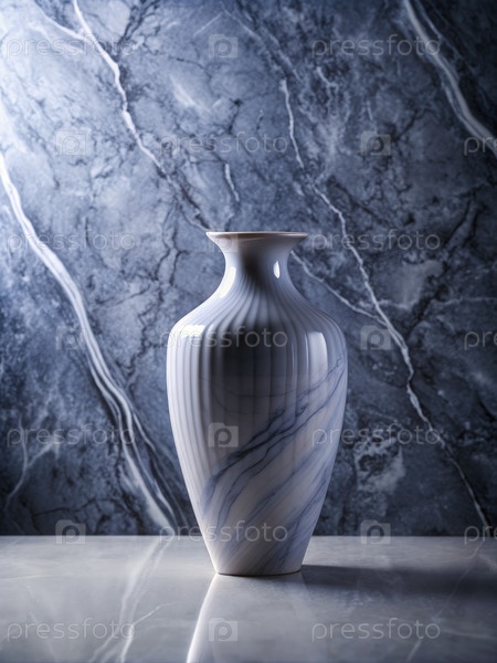 Элегантная белая ваза отображается на поразительном мраморном фоне в управляемой установке освещения