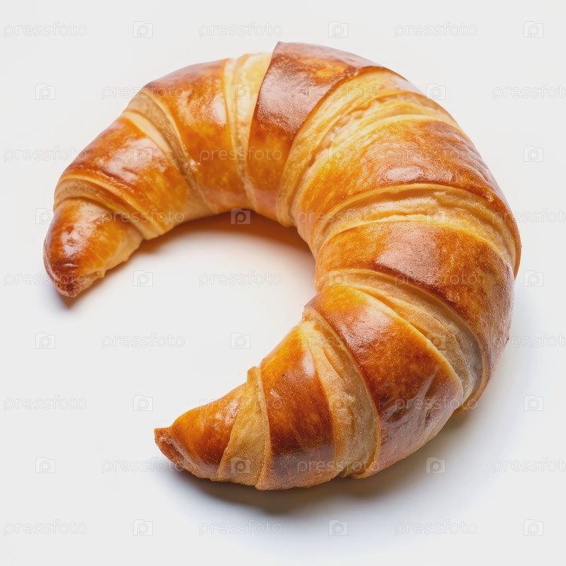 Одинокий, свежевыпеченный кроассан Medialuna на белом фоне