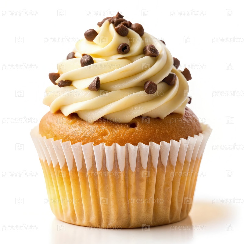 Вкусный ванильный кекс с шоколадными чипсами на белом фоне