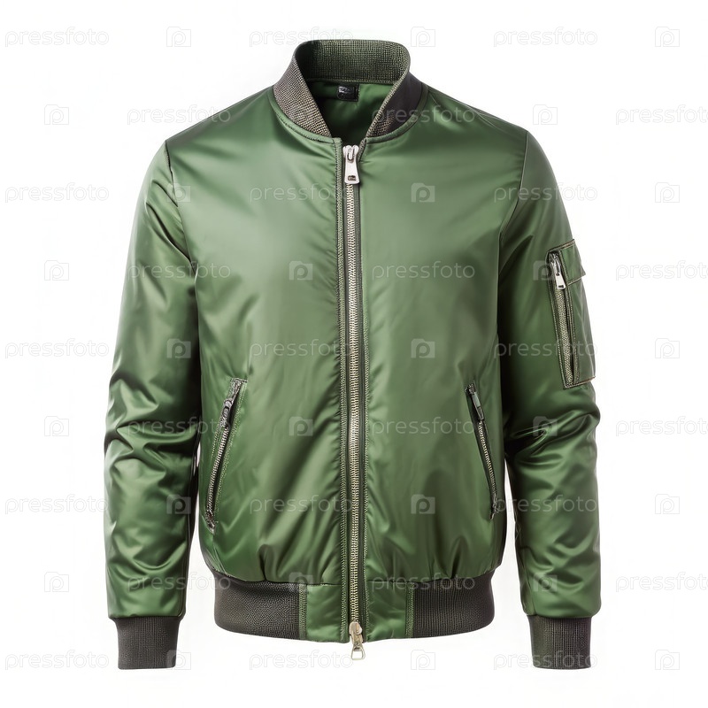 Стильная зеленая бомбовая куртка с молнией и карманами. генеративный AI