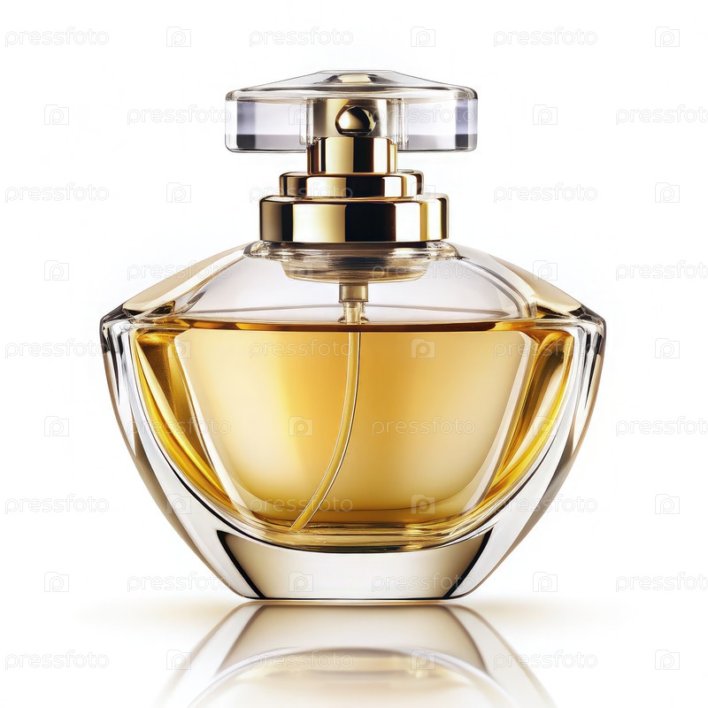 Элегантная бутылка роскошного парфюма, отображаемая на белом фоне для эстетической привлекательности