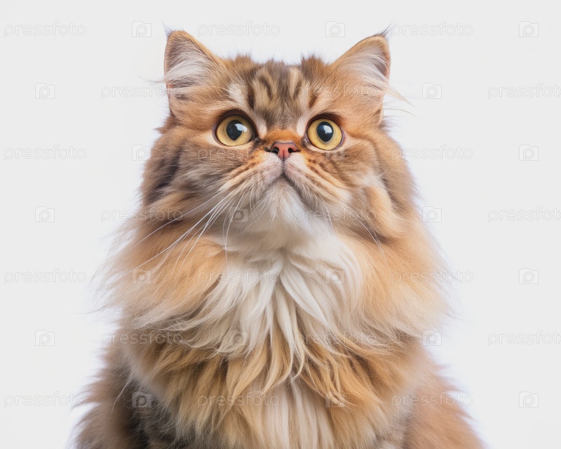 Любопытный персидский кот смотрит вверх на белый фон