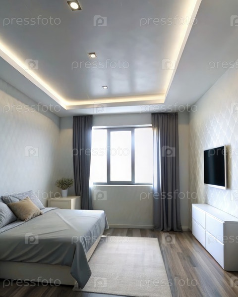 Спальня с затяжной подсветкой и окнами от пола до потолка. генеративный современный ИИ