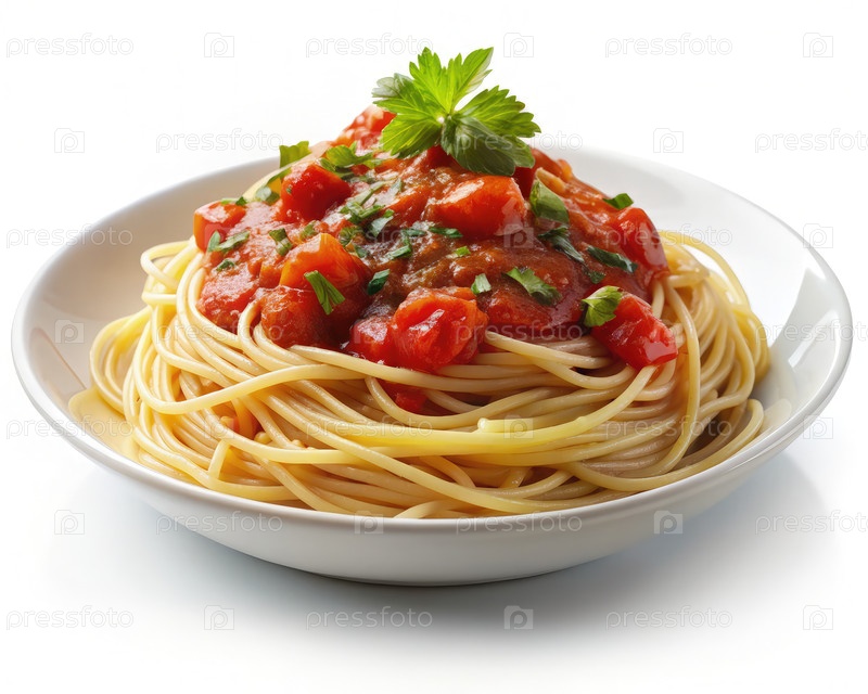 Тарелка спагетти с соусом Arrabbiata и фаршированным персиком