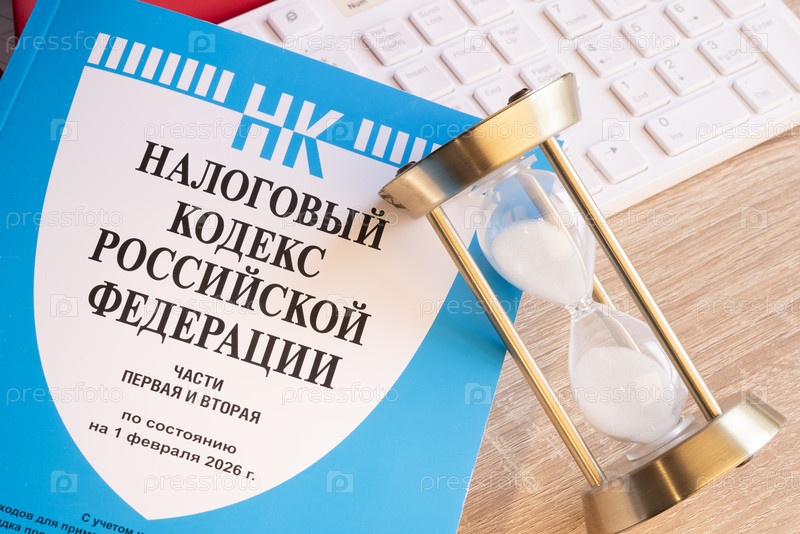 Налоговый кодекс и песочные часы на клавиатуре 2026