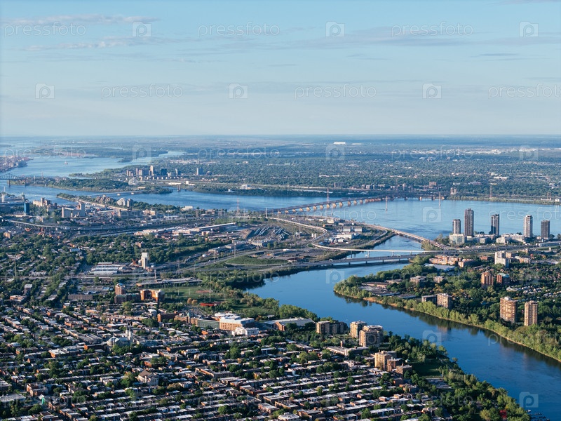 Вид с воздуха района Верден вблизи Иль-де-Соур и Лашинского канала в Монреале, Квебек, Канада
