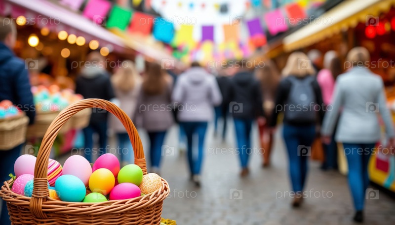 Пасхальная праздничная ярмарка в теплый солнечный день