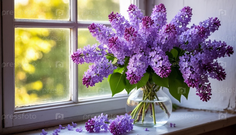 Весенние цветы сирени на подоконнике