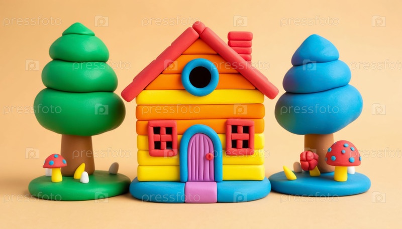 Мультфильм Дом из детского пластика на минималистическом бежевом фоне