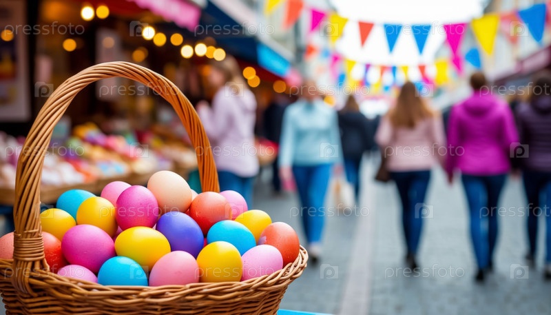 Пасхальная праздничная ярмарка в теплый солнечный день