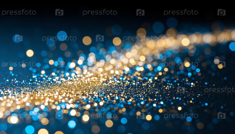 Golden Bokeh Glow on Blue Background for Overlay Effect Soft Sparkling Light Particles Золотое свечение боке на синем фоне для эффекта перекрытия Мягкие искрящиеся частицы света