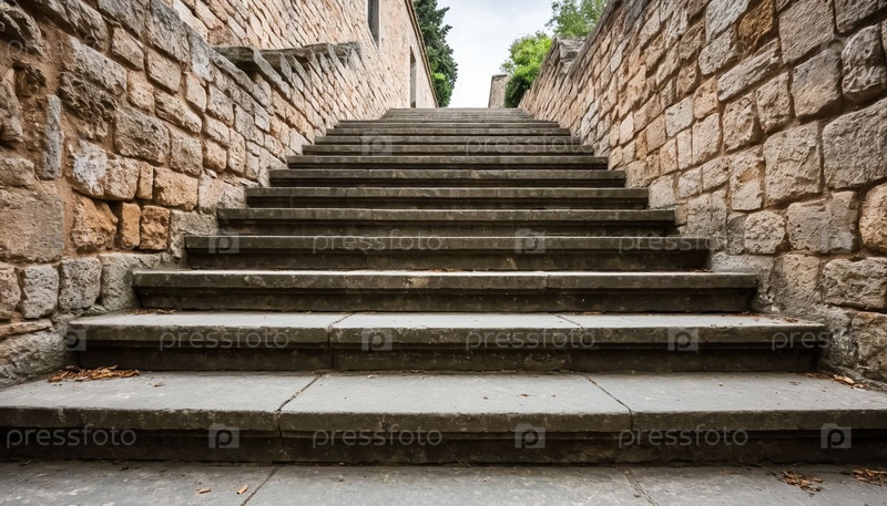 Каменные ступени ведут вверх Древняя лестничная дорога