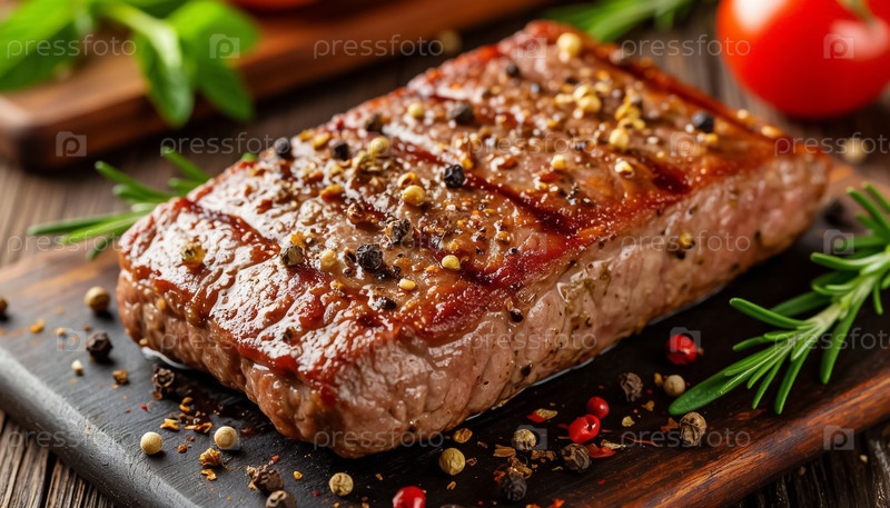 Аппетитное жареное мясо на тарелке Деликатесная пищевая фотография