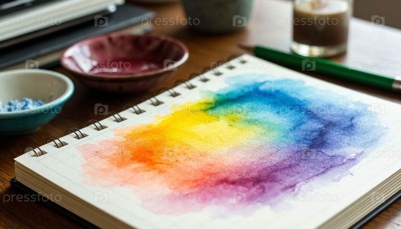 Абстрактная текстура акварели: стирка краски и пятна на бумаге, верхний вид Abstract View