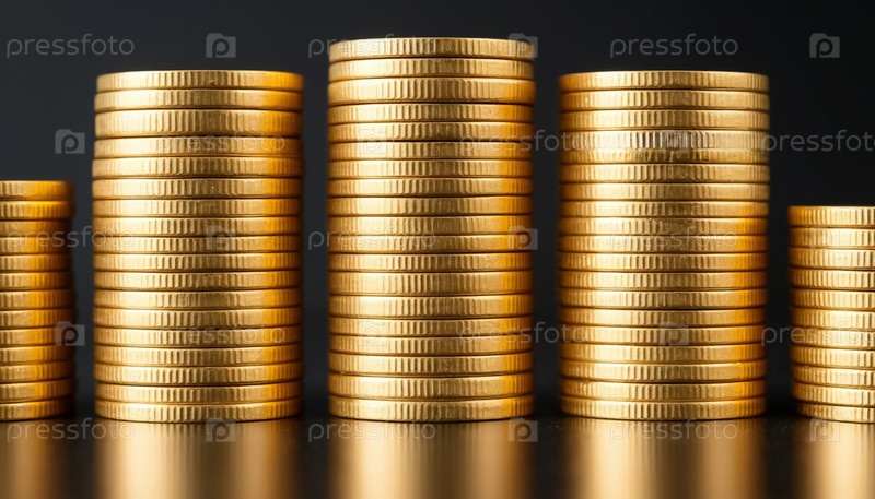 Стол золотых монет Бизнес Финансы Концепция Пирамида Растущая стоимость Торговля на биржах