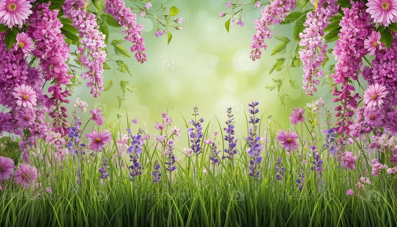 Зачарованный сказочный сад с цветущими цветами причудливый печатный лист