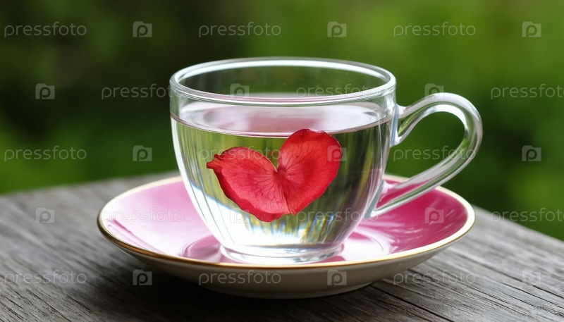 Травяной чай в прозрачной стеклянной чашке с парным формированием формы сердца, романтическая концепция