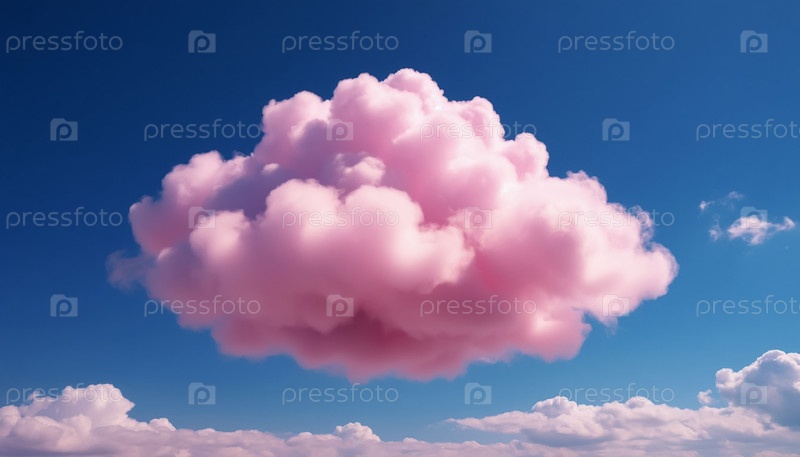 Мягкие розовые облака против ярко-синего неба, мечтательный лыжный пейзаж