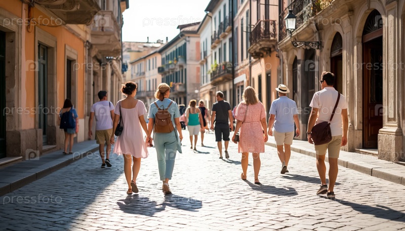 Туристы, исследующие старый европейский город во время летних каникул Историческая архитектура Солнечный день