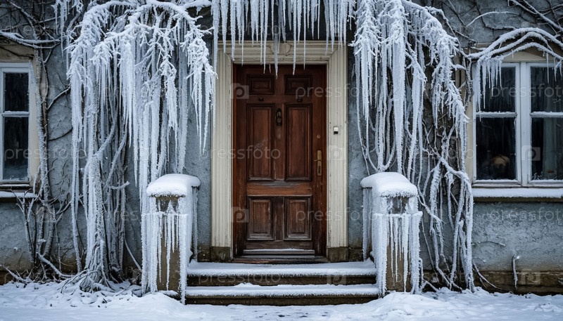 Экстремальные морозы и ледяные образования на ступнях входной двери