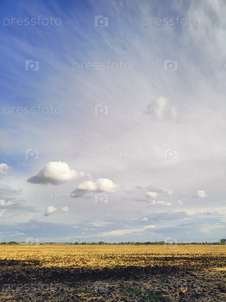 Огромное золотое поле под драматическим голубым небом, сельский ландшафтный фон, спокойная деревня обои