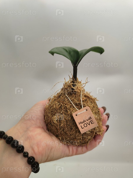 Ручной Kokedama с Love Tag, Минималистское растение подарок фон, экологически чистые обои