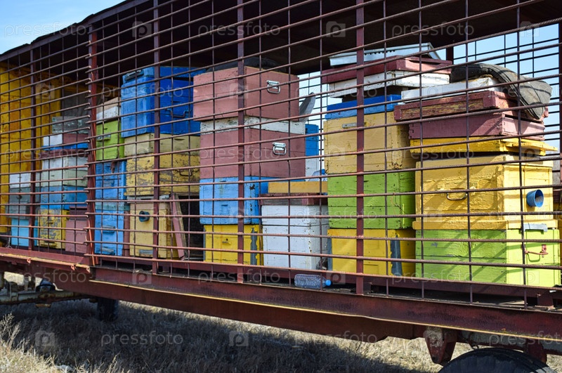 Передвижная пчелиная пасека. Домики для пчел. Перевозка пасеки ранней весной в поле