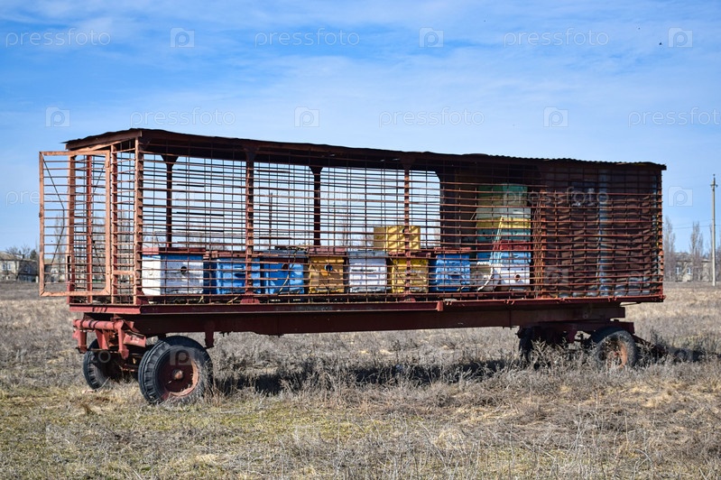 Передвижная пчелиная пасека. Домики для пчел. Перевозка пасеки ранней весной в поле