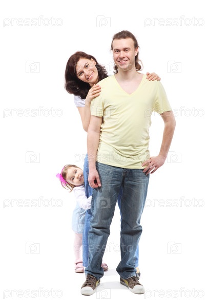 Молодая счастливая семья - мать, отец и маленькая дочь -