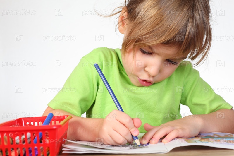 Ребенок рисует карандашом на бумаге
