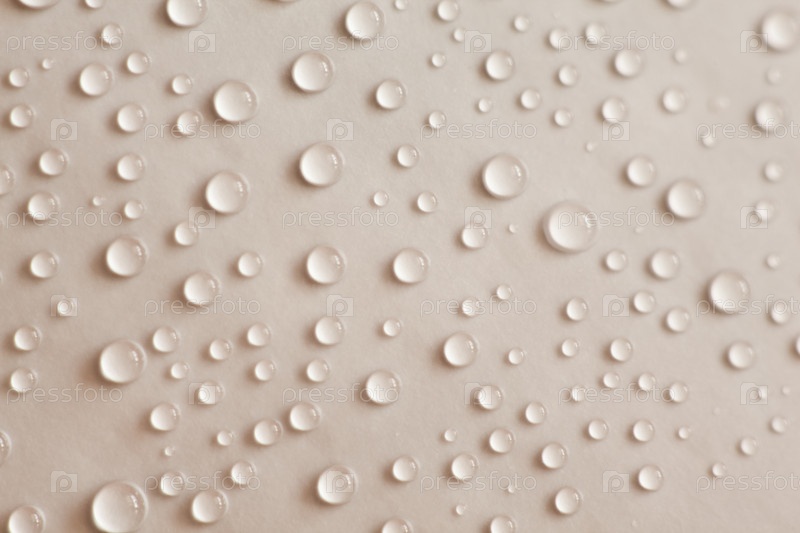 Крошечные капли воды отдыхают на гладкой бежевой поверхности