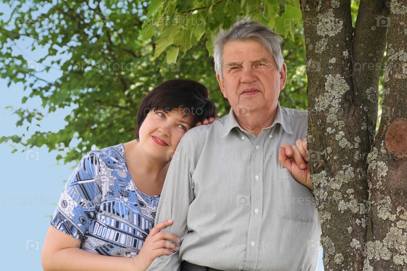Старший старшеклассник стоит на дереве, его взрослая дочь обнимает его и