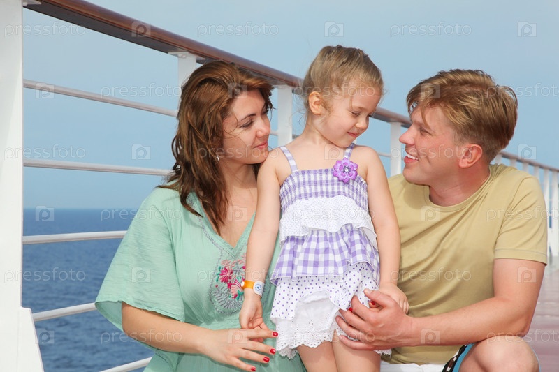 Семья наслаждается палубой круизного корабля