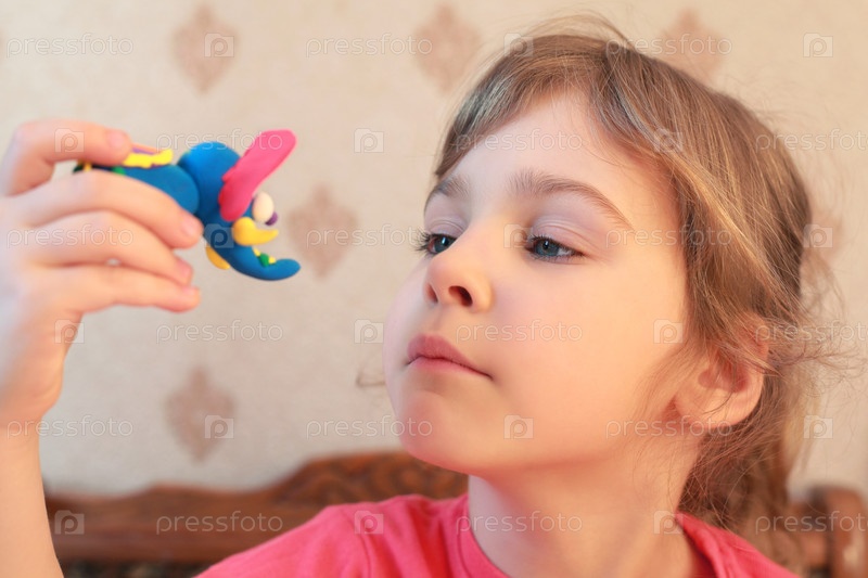 Маленькая девочка держит домашнего слона и смотрит на него, сосредоточившись на девушке
