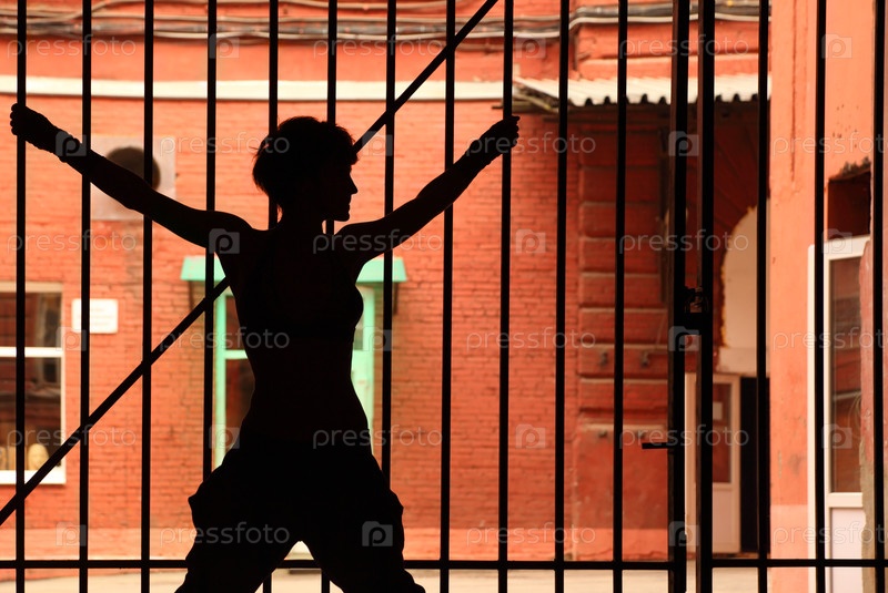 Силуэт танцующей девушки в темноте, она открывает руки и держит