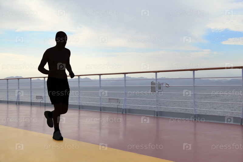 Силуэт человека, бегущего на палубе круизного лайнера