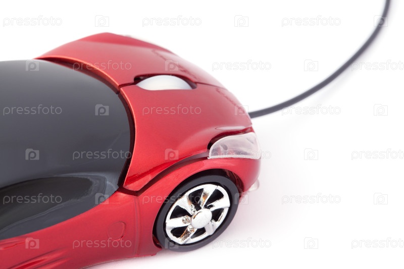 Красная компьютерная мышь в форме автомобиля с черным шнуром