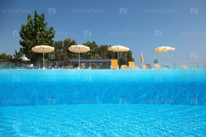Бассейн под открытым небом, на краю которого стоят кресла с