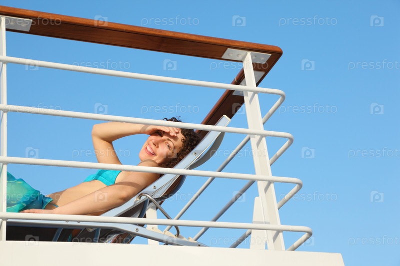 Женщина расслабляется на балконе круизного лайнера