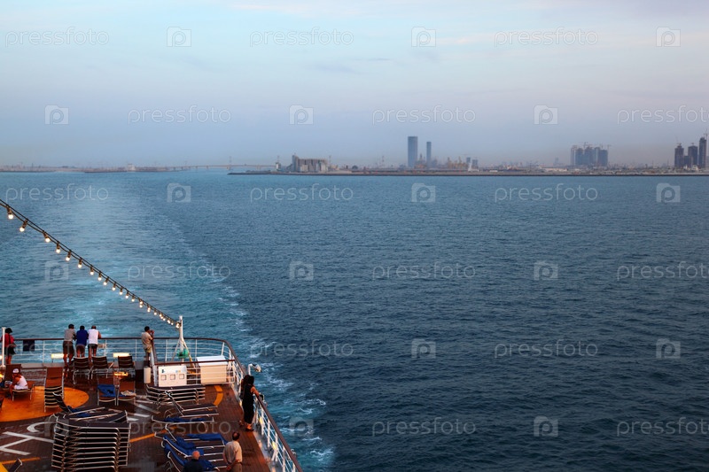 Дальний горизонт города с видом на обширные, спокойные воды океана