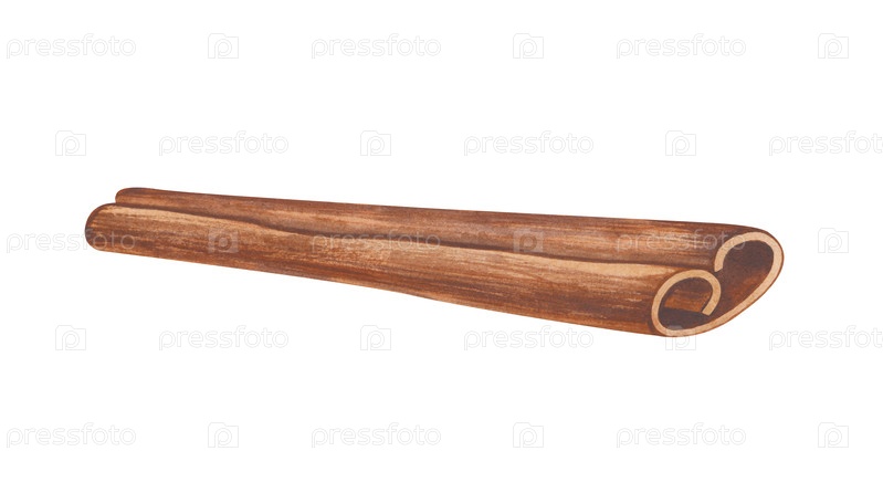 Ручная акварельная иллюстрация одной сухой палочки корицы. Клипарт специй с естественной коричневой текстурой. Для украшения рождественской кухни, осеннего дизайна, создания корпоративной идентичности магазина пряностей, создания концепций для ароматного