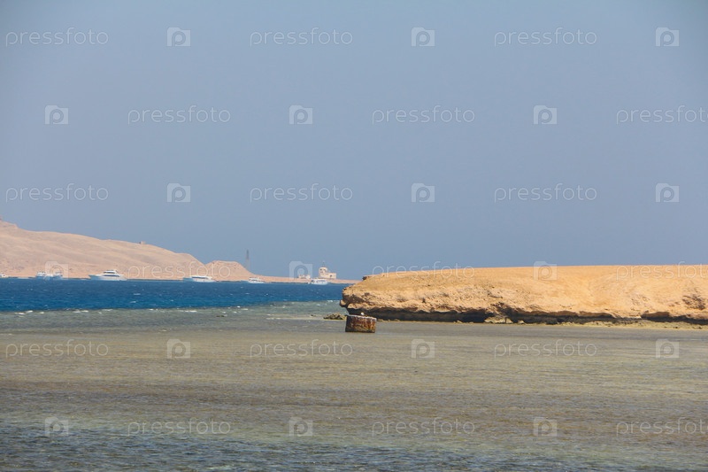 Береговая линия Красного моря с засушливым ландшафтом и чистой голубой водой