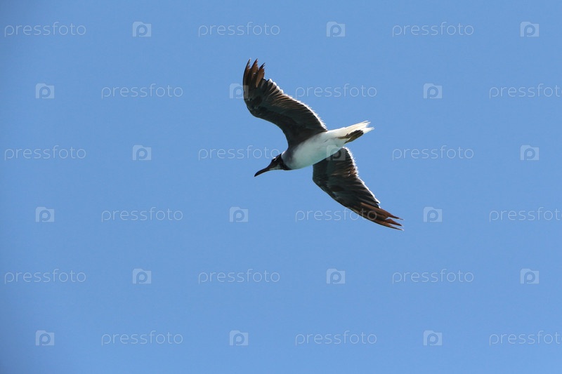 Морская птица летает в ясном голубом небе