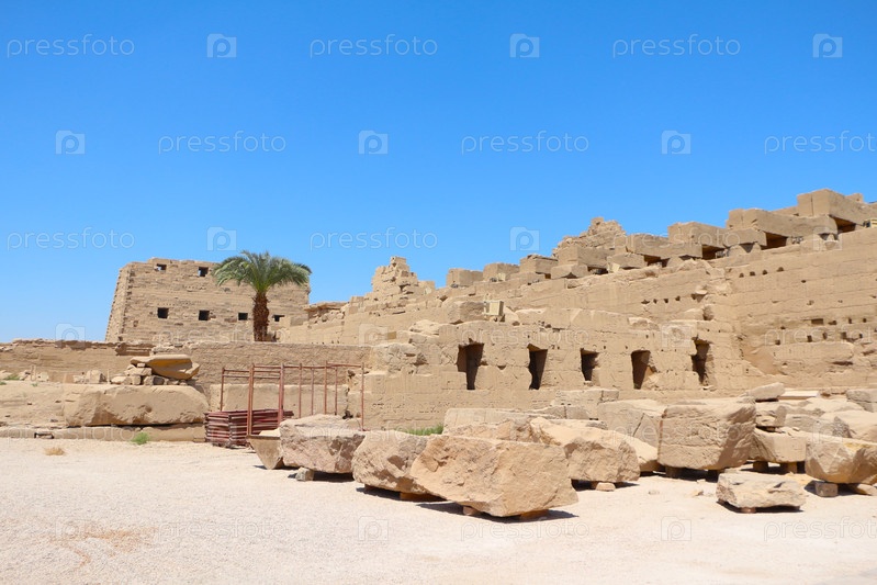 Руины древнеегипетского храма под голубым небом