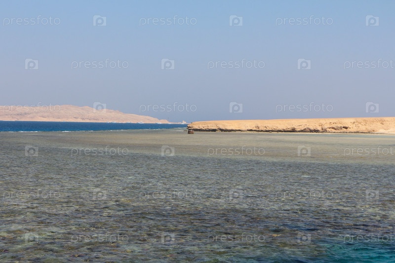 Береговая линия Красного моря с засушливым ландшафтом и чистой голубой водой