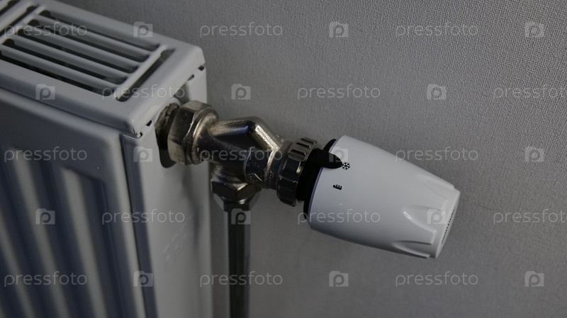 Близкий план белого радиатора с термостатическим клапаном для управления отоплением
