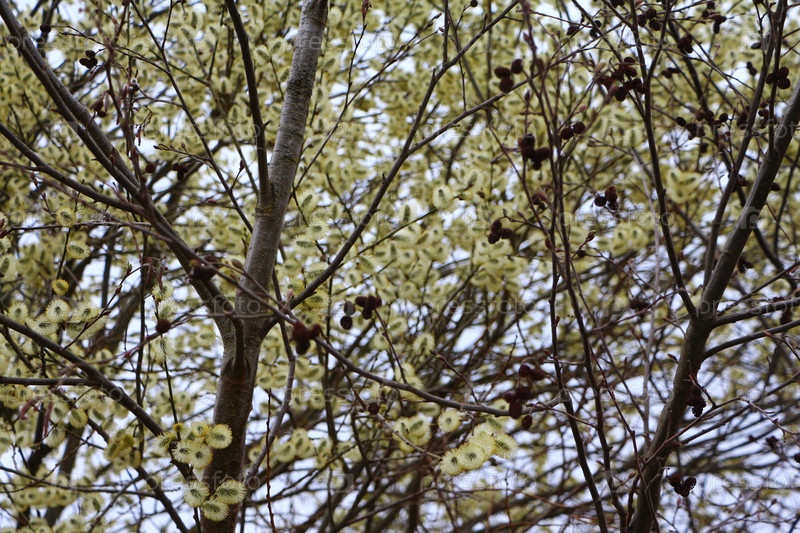 Пушистая киска Уиллоу Кэткинс на ветках весной