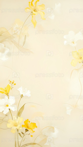 Группа цветов в оттенках белого, бежевого и желтого расположена на светло-сером фоне.Цветы устроены так, чтобы привлечь внимание к своим краскам и формам Generative AI