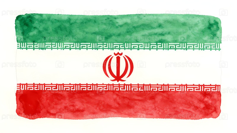 На рисунке изображен иранский флаг с смесью зеленого, белого и красного цветов. эмблема и дизайн показаны в простом акварельном стиле