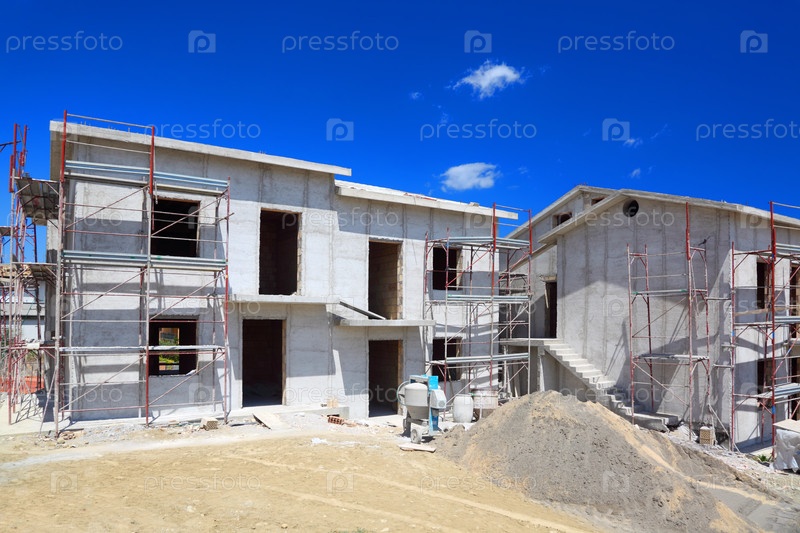 Строительная площадка под ярко-синим небом
